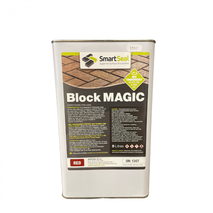 Přípravek „Block Magic“ se nanáší válečkem s vydatností přibližně 3,0 m2 na litr. Ujistěte se, že barva je důkladně zaschlá před nanesením druhé vrstvy Smartseal impregnačního nátěru na zámkovou dlažbu. Před použitím impregnačního nátěru, vmeťte dostatečné množství křemičitého písku do spár, tak aby nepropadával do nižších vrstev. Při 20 ° C a bude schnout asi 4 hodiny, po tuto dobu nevstupujte na dlažbu. Vjezd automobilem nejdříve po 24 hodinách (při teplotě 20 ° C ). Tyto doby mohou být prodlouženy nebo zkráceny v závislosti na okolní teplotě.