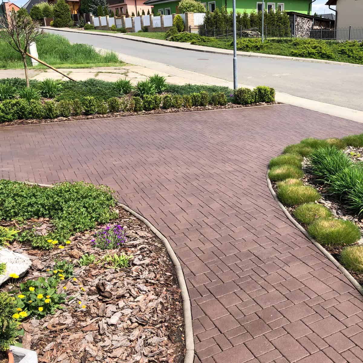 Zámková dlažba získá matný vzhled po nanesení impregnačního nátěru a bude chráněná před mechem a plevelem.